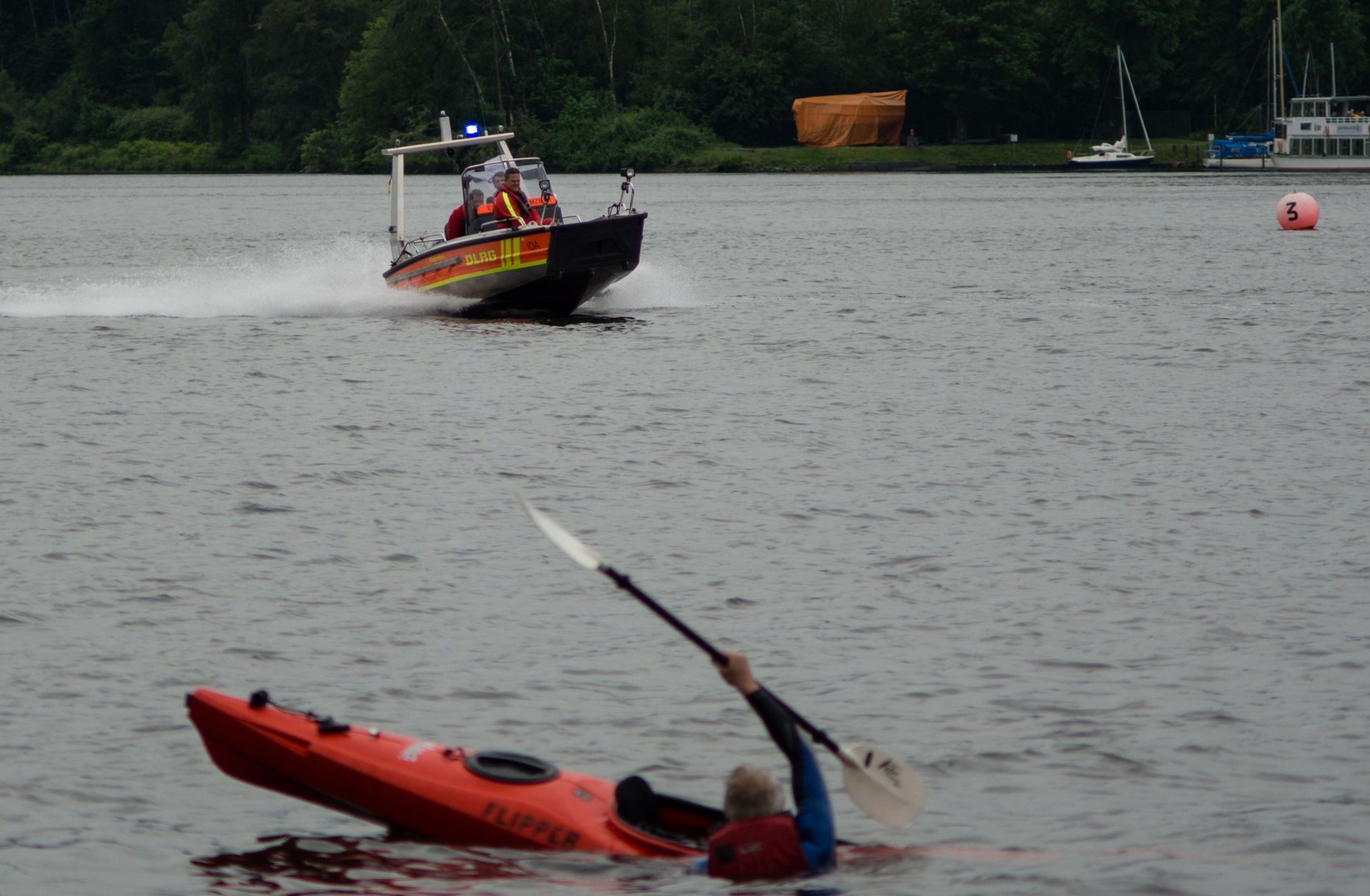 Rettung durch die ganztags anwesende DLRG Truppe (siehe Bild Tdw04 und -05). Es