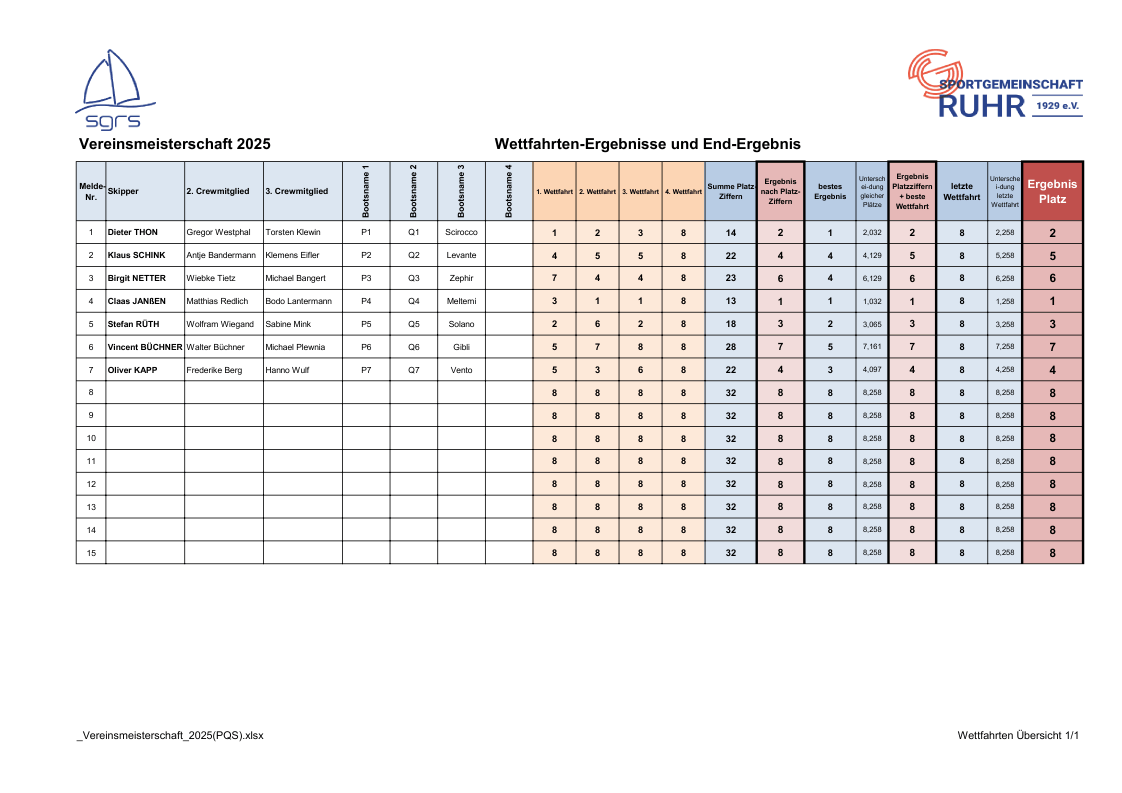 Vereinsmeister 2025 wurde die Crew Claas Janßen, Matthias Redlich und Bodo Lantermann!